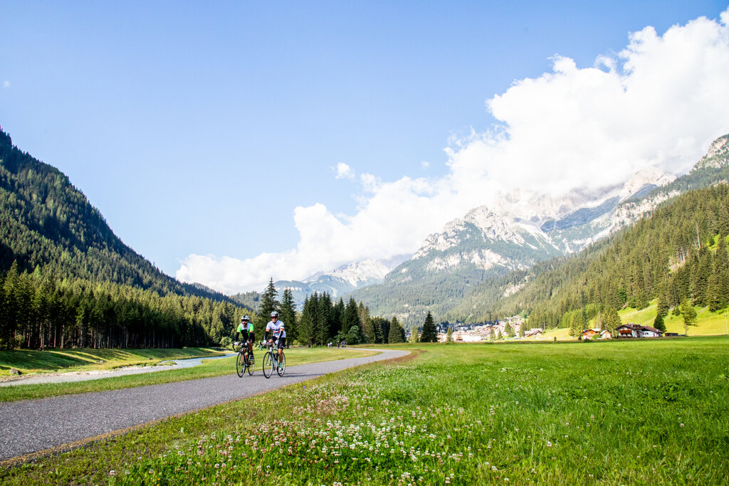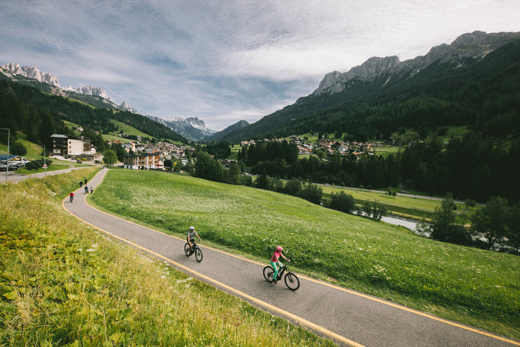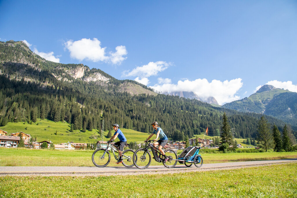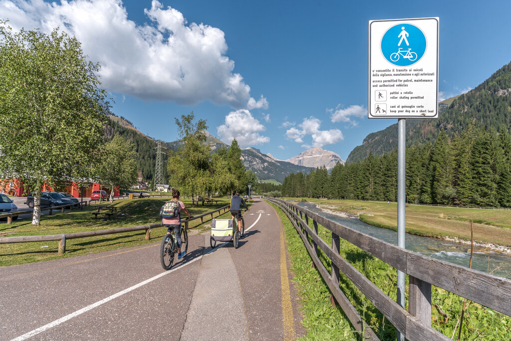 Radfahren in den Dolomiten wird immer beliebter, auch bei weniger Trainierten, die hier auf den Radweg der Dolomiten zählen können, eine angenehme 47.5 km lange Strecke (durchschnittliche Fahrtzeit 3 Stunden), die überwiegend eben verläuft. Von Mai bis Oktober kann man von Alba di Canazei (1517 m) nach Molina Fiemme (965 m) radeln, und auf dem Rückweg den Fassa & Fiemme Bike Express nehmen. Der spezielle Bus mit 30 bis 50 Sitzplätzen und einem Anhänger für die Fahrräder ermöglicht es den Radfahrern, den Rückweg bequem an Bord sitzend anzutreten. Dank der drei täglichen Fahrten und der sechzehn Haltestellen kann man in jedem Dorf ein- oder aussteigen, je nach Ausgangspunkt und Zielort.