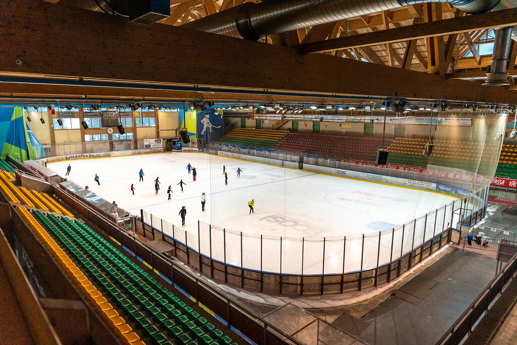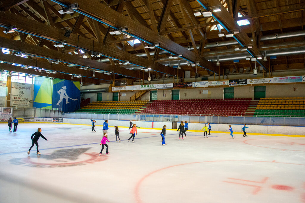 Die weiße, glatte und glänzende Platte lädt dazu ein, mit Schwung und Leichtigkeit durchbohrt zu werden. Im Indoor-Eisstadion "Gianmario Scola" in Alba di Canazei steht eine fabelhafte olympische Piste (30 x 60 m künstlich gekühlt) Anfängern und allen, die Pirouetten und Arabesken beherrschen, zur Verfügung, die im Rhythmus der Musik auf der Klinge gespielt werden. Die 12.000 m ² große Struktur bietet Platz für bis zu 3.500 Personen und ermöglicht es Ihnen, Schlittschuhe zu mieten und auch einige Lektionen zu nehmen, um die Grundtechnik zu erlernen oder den Stil zu verbessern. Die Begleitpersonen können hinter den Balustraden auf den Tribünen zusehen oder sich in der Bar der Eishalle aufwärmen.
