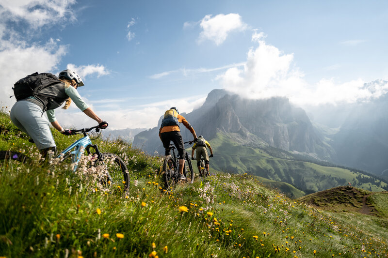 Im Winter dreht man seine Runden auf Skiern - im Sommer erobert man den Sella vom Sattel aus. Die Sellaronda ist ein Muss für alle, die echte Trails lieben. Und was für welche! Vier Täler, vier Pässe, zwei Regionen, ein Ride. Eine epische Rundtour rund um eine Dolomitenfestung - am besten mit einem erfahrenen Bike-Guide. Mit nur einem Pass geht’s bequem mit den Liften bergauf. Was folgt, ist ein Panorama-Feuerwerk: gemeißelt in den Fels, ständig im Wandel. Jeder Anstieg fordert. Jede Abfahrt beflügelt. Jeder Halt belohnt. Man schaut nicht zum Himmel - man fährt ihm entgegen.