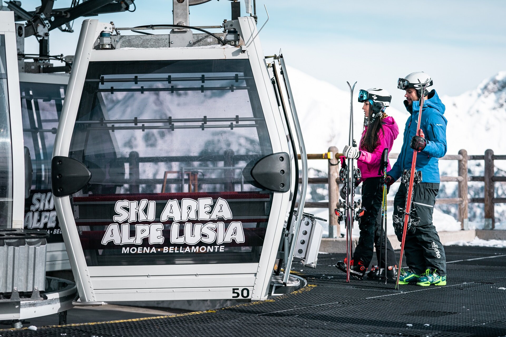 Das Skigebiet Alpe Lusia ist von Moena aus leicht zu erreichen, es liegt nur 4 Kilometer entfernt. Von der Ortschaft "Ronchi" führt eine Kabinenbahn nach "Valbona" und "Le Cune", einem natürlichen Tal, in dem man die entspannende alpine Atmosphäre der Dolomiten genießen kann.