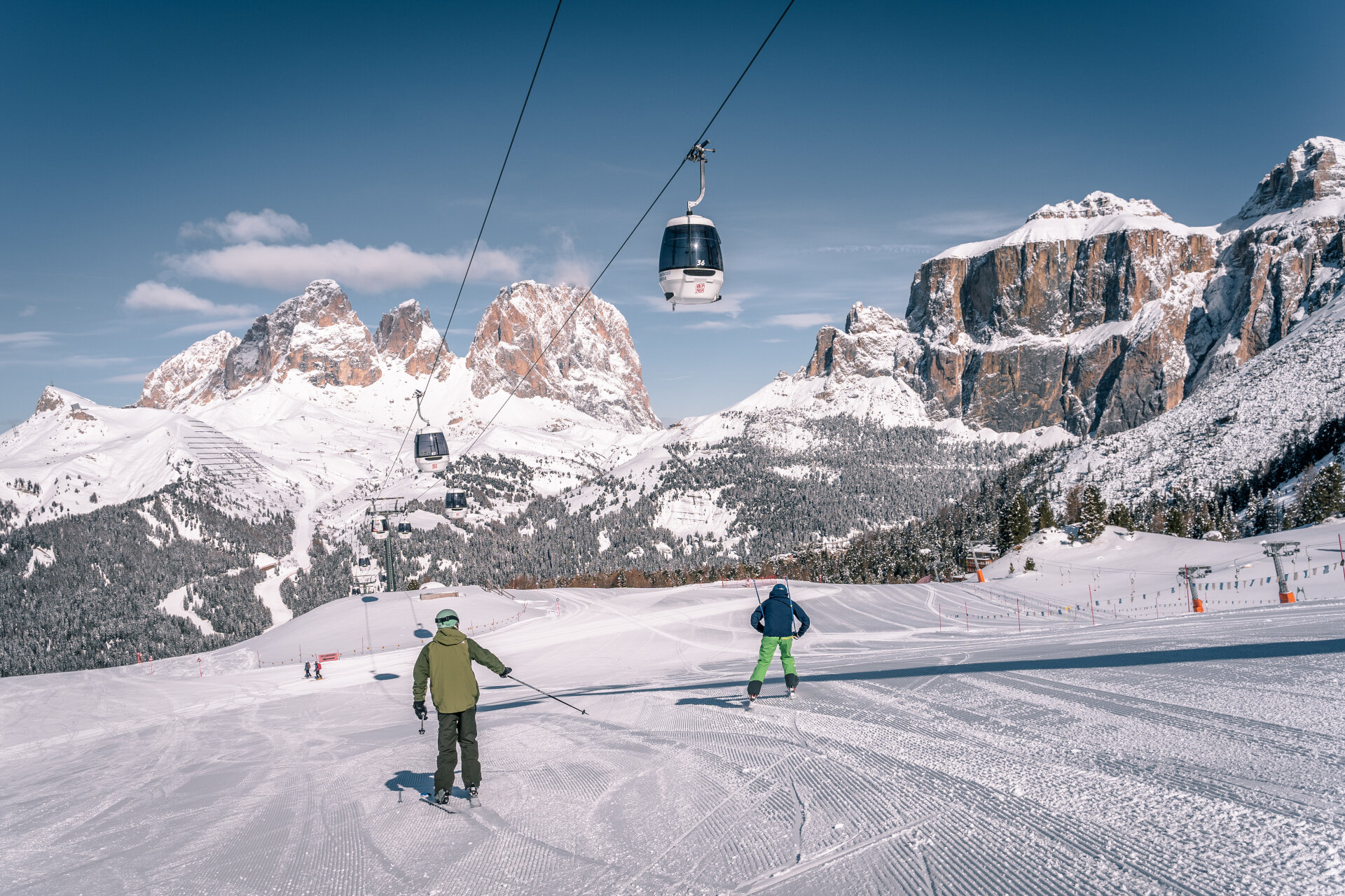 Ob vom Col Rodella (2.485 m) oberhalb von Campitello oder vom Belvedere-Col dei Rossi (2.423 m), erreichbar von Canazei, Pecol, Pian Frataces oder Alba di Canazei: Die Dolomiten eröffnen sich hier wie eine grenzenlose Naturkulisse. Die überwiegend roten Pisten (mittlerer Schwierigkeitsgrad) wechseln zwischen breiten, sonnigen Abfahrten und technisch anspruchsvolleren Passagen - ideal für alle, die Geschwindigkeit und Tempowechsel lieben. Unbedingt fahren: die anspruchsvolle schwarze Diego am Belvedere und die legendäre 3-Tre - 3.300 m am Stück vom Col Rodella bis nach Pian de Frataces (Lupo Bianco).