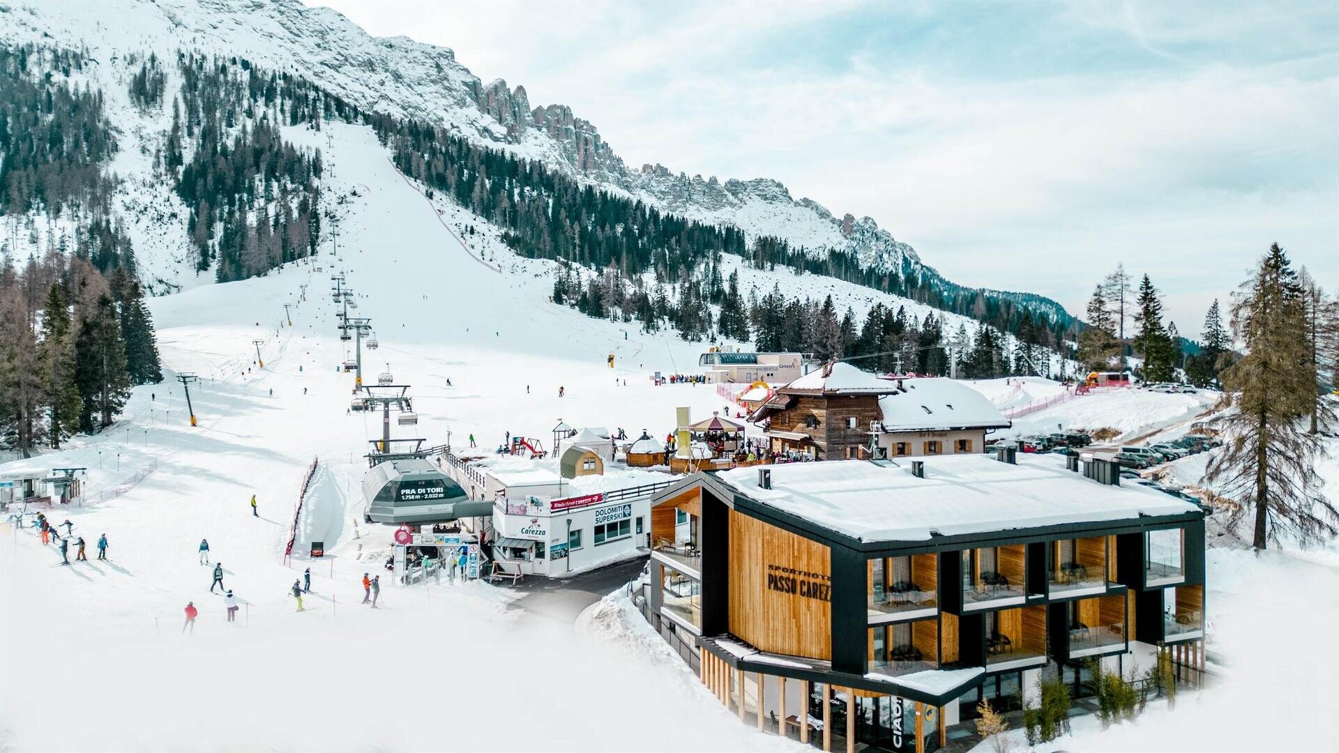 Die Anreise nach Carezza ist schon eine Reise in die Geschichte. Die Dolomitenstraße, die seit 1909 Bozen mit Cortina d’Ampezzo verbindet, führt über den Karerpass - das Tor zu einem der beeindruckendsten Panoramaskigebiete der Dolomiten. Ein wahres Mosaik an Möglichkeiten, wo Skifahren auf die Legende von König Laurin trifft. Breite, sonnige Pisten schlängeln sich durch Wälder und Lichtungen - ideal für Technikliebhaber ebenso wie für Einsteiger im Schnee. Bei jeder Kurve begleiten die Gipfel von Rosengarten und Latemar die Abfahrt, die im Morgen- und Abendlicht in den Farben der "Enrosadira" (der große Bruder vom Alpenglühen) erglühen.