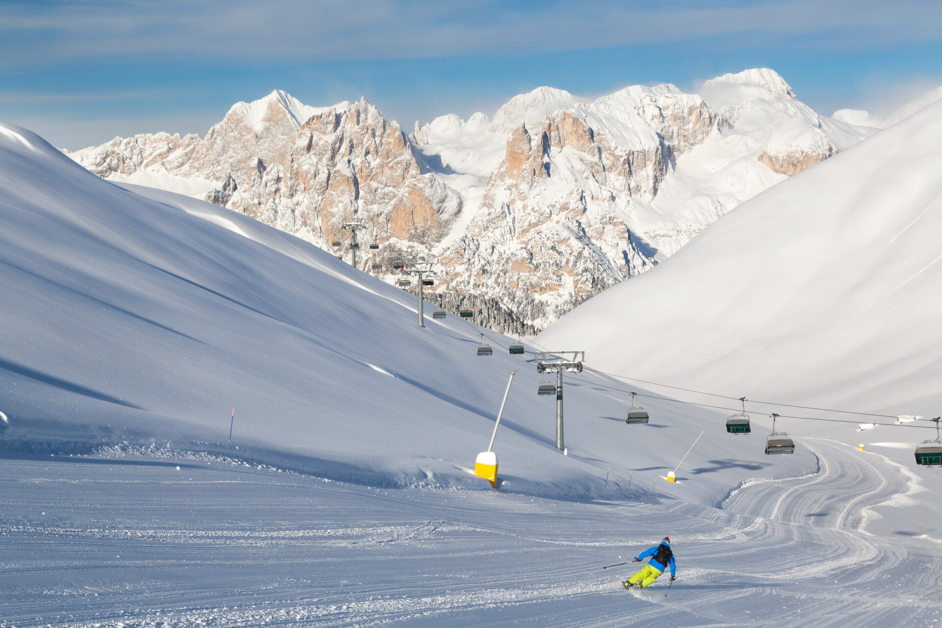 Vergessen Sie die üblichen Routen - im Fassatal erwartet Sie die Panorama-Skitour! Eine Tour, die an jeder Kurve überrascht. 70 km ohne eine einzige Piste zu wiederholen und 39 Liftanlagen verbinden die Skigebiete Catinaccio-Ciampedie, Buffaure-Ciampac und Belvedere-Col Rodella und führen bis zum Sellajoch und Pordoijoch. Eine ständige Abwechslung zwischen Abfahrten und Aufstiegen, Ausblicke, die wie fertige Geschichten zum Teilen wirken, und Hütten, in denen Sie sich mitten in den Dolomiten fühlen.