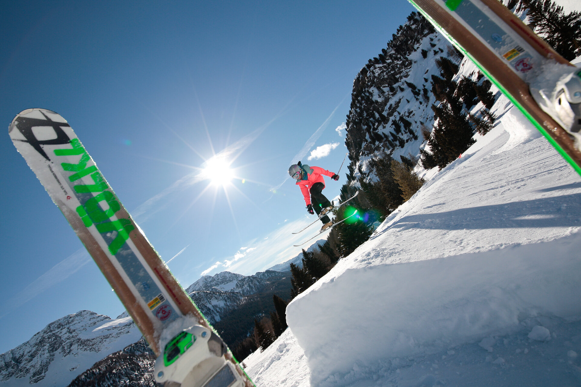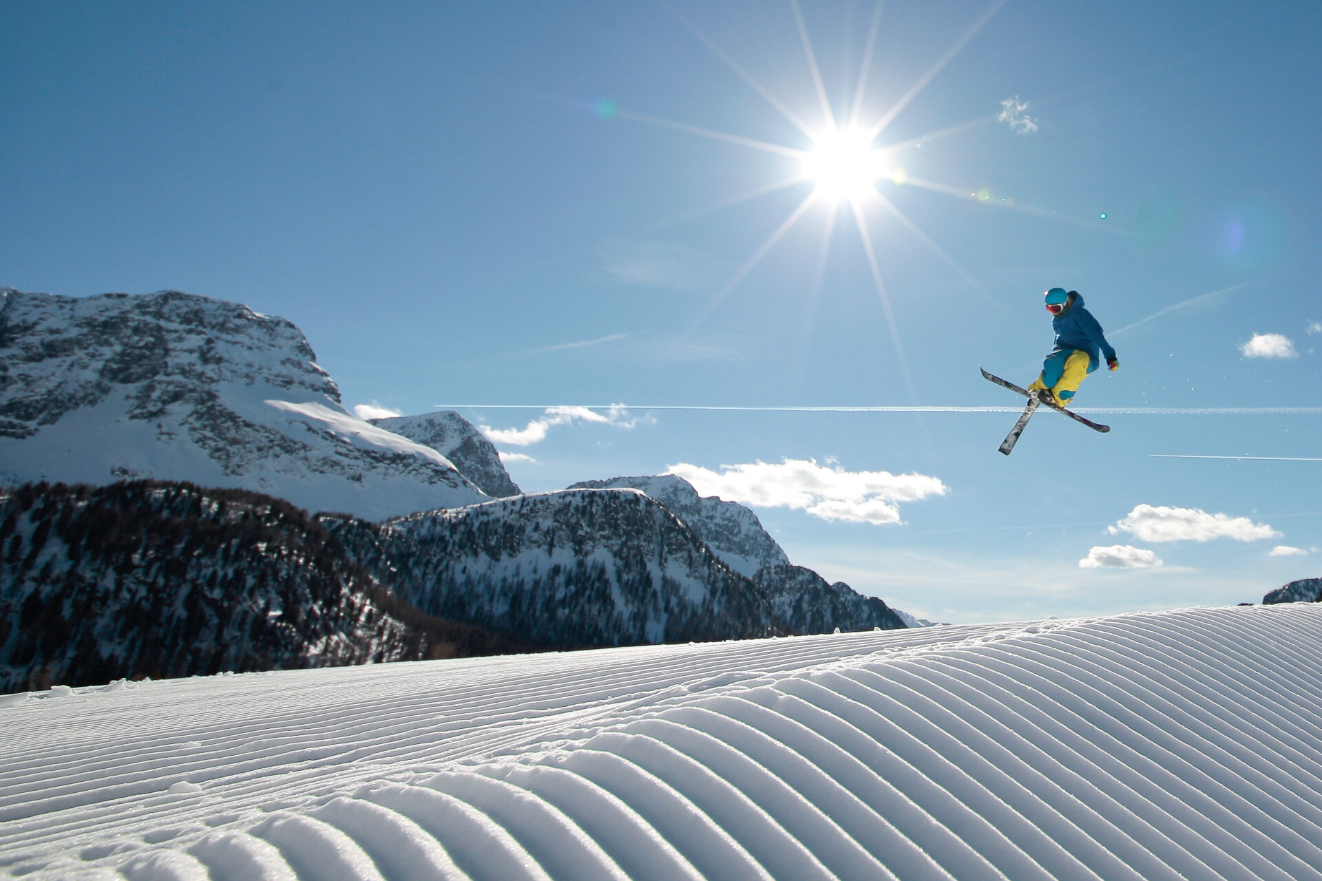 Am San Pellegrino Pass befindet sich einer der beliebtesten sonnigen und windgeschützten Arena bei Freestylern: Sie wird jeden Morgen geshaped und gefräst, um jederzeit perfekte Strukturen zu gewährleisten. An Schnee und Musik mangelt es nie!