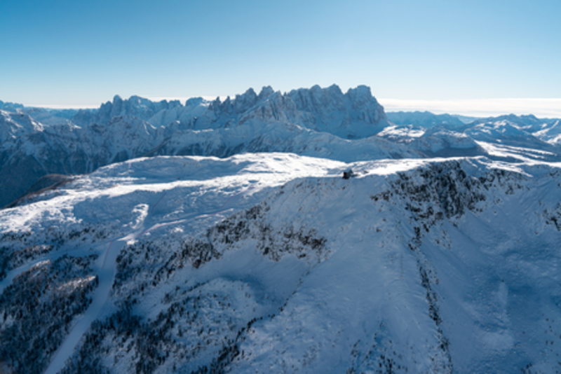 Die Piste im Skigebiet San Pellegrino verbindet hohe Geschwindigkeiten mit technischem Anspruch. Sie beginnt auf 2.480 m Höhe am Col Margherita und führt bis auf 1.880 m am Dolomitenpass hinunter. Das ergibt eine Gesamtlänge von 2.400 m und einen Höhenunterschied von 600 m. Die Strecke ist nicht ganz neu: Der erste Abschnitt verläuft parallel zur Piste, die zum Cavia-See führt, bevor sie in Richtung Pass abbiegt und sich schließlich mit der Direktstrecke Col Margherita verbindet. Kurz vor dem Richtungswechsel beginnt der herausfordernde Abschnitt der schwarzen Piste La VolatA: mit einer maximalen Steigung von 50 % (im Durchschnitt ca. 30 %) und einem atemberaubenden Finale durch einen märchenhaften Wald. Da die Abfahrt in einem Zug gemeistert werden sollte, lohnt es sich, vorab ein paar Minuten auf der Terrasse an der Bergstation der Seilbahn zu verweilen. Hier können Sie die spektakuläre Aussicht auf die Pale di San Martino und die Gipfel, die den Pass umrahmen, genießen.