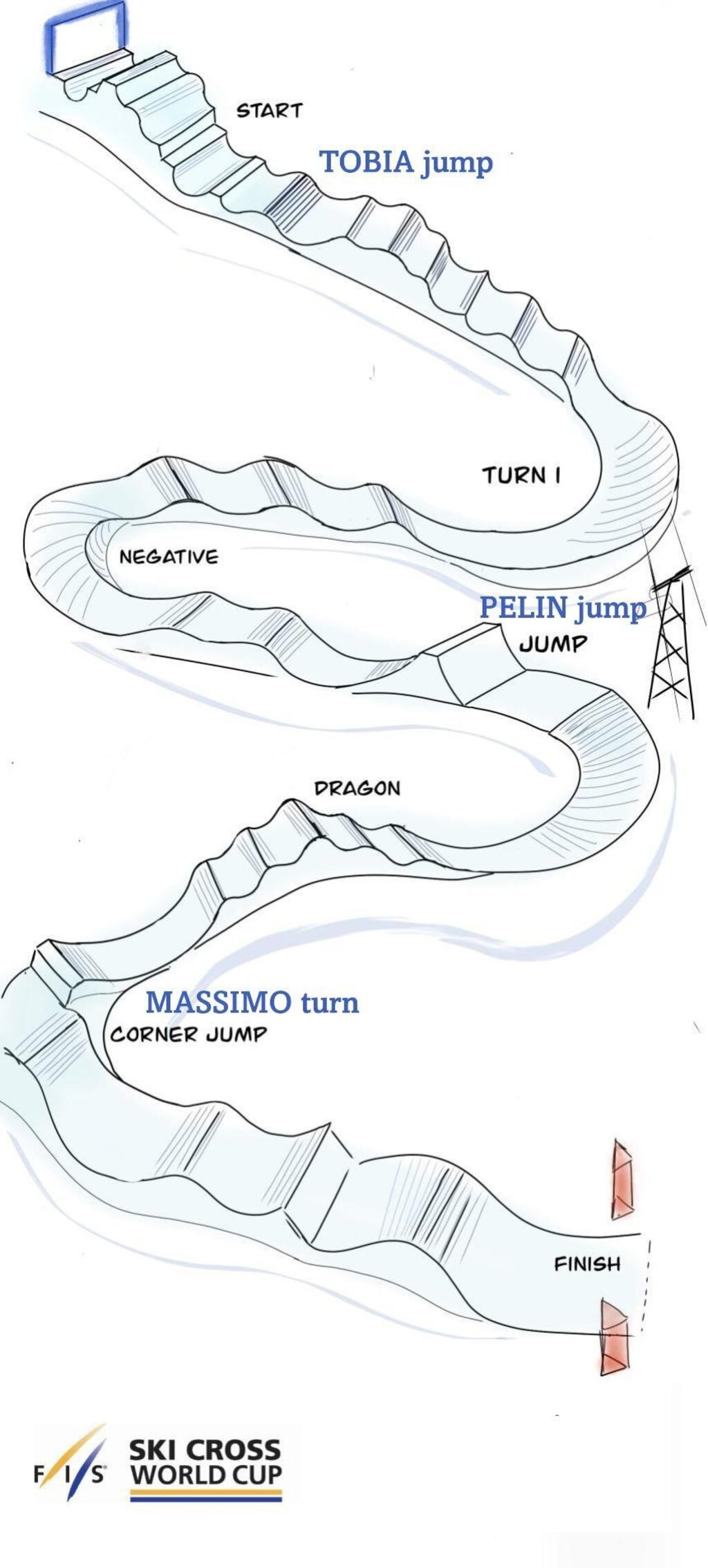 Die 1.300 Meter lange Strecke mit 180 Metern Höhenunterschied wurde von Dario Dellantonio (Pistenchef), Mattia Giongo (Rennleiter) und lokalen Technikern entworfen. Tückische Kurven, bis zu 30 Meter weite Sprünge und schnell aufeinanderfolgende Passagen fordern höchste Konzentration. Ein temporeiches Rennen mit Spannung bis zur Ziellinie ist garantiert. Gemäß dem K.o.-System treten je vier Athlet:innen pro Lauf gegeneinander an - nur die beiden Schnellsten steigen in die nächste Runde auf. Geschwindigkeiten von über 100 km/h verlangen eine perfekte Kombination aus Präzision, Strategie und athletischer Stärke.