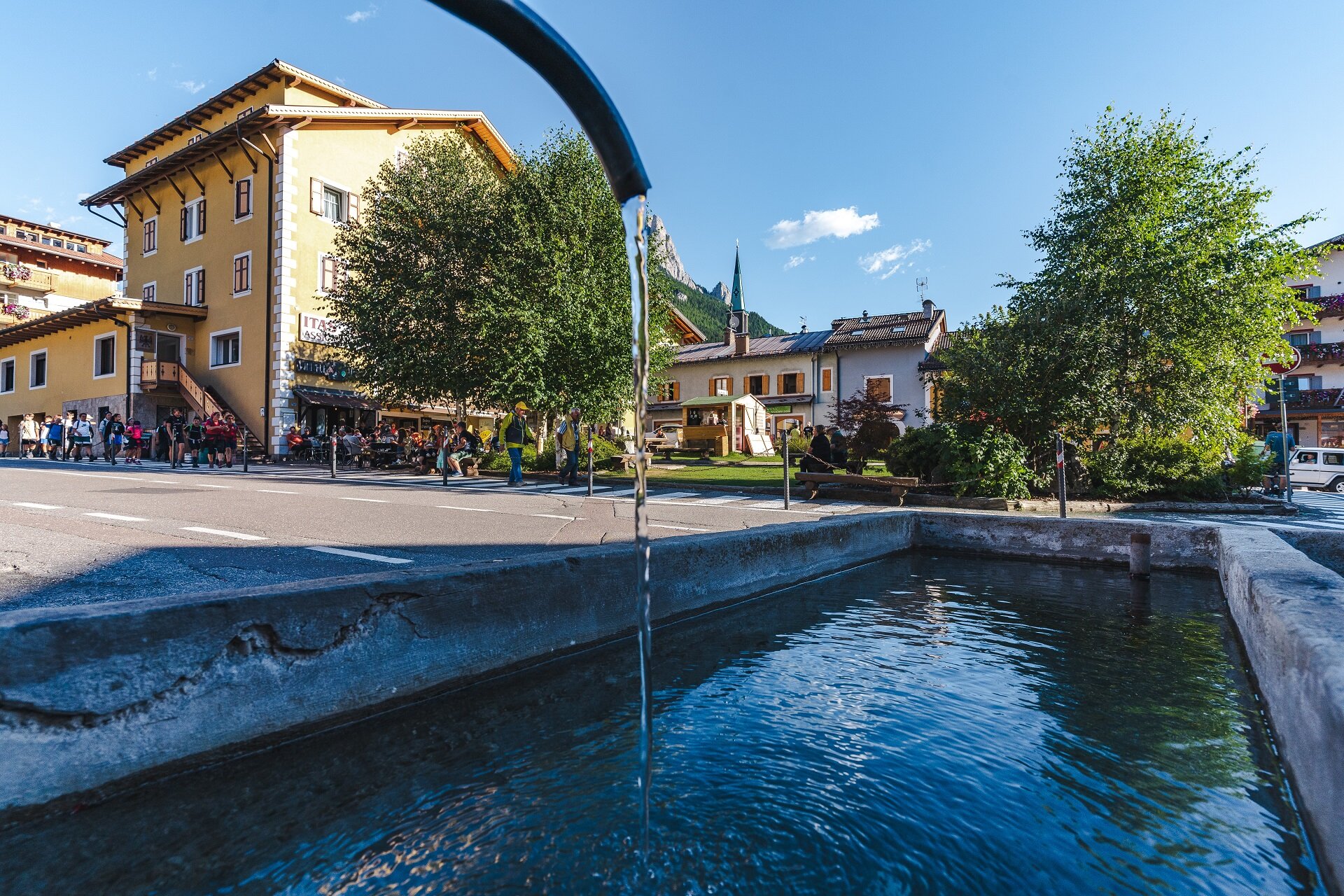 Die Ortschaft Pozza di Fassa (1320 m ü.d.M.), seit 2018 ein Ortsteil der Gemeinde San Giovanni di Fassa, wird von den Gipfeln Cima Undici (2507 m), Cima Dodici (2446 m) und den majestätischen Torri del Vajolet (2812 m) überragt.